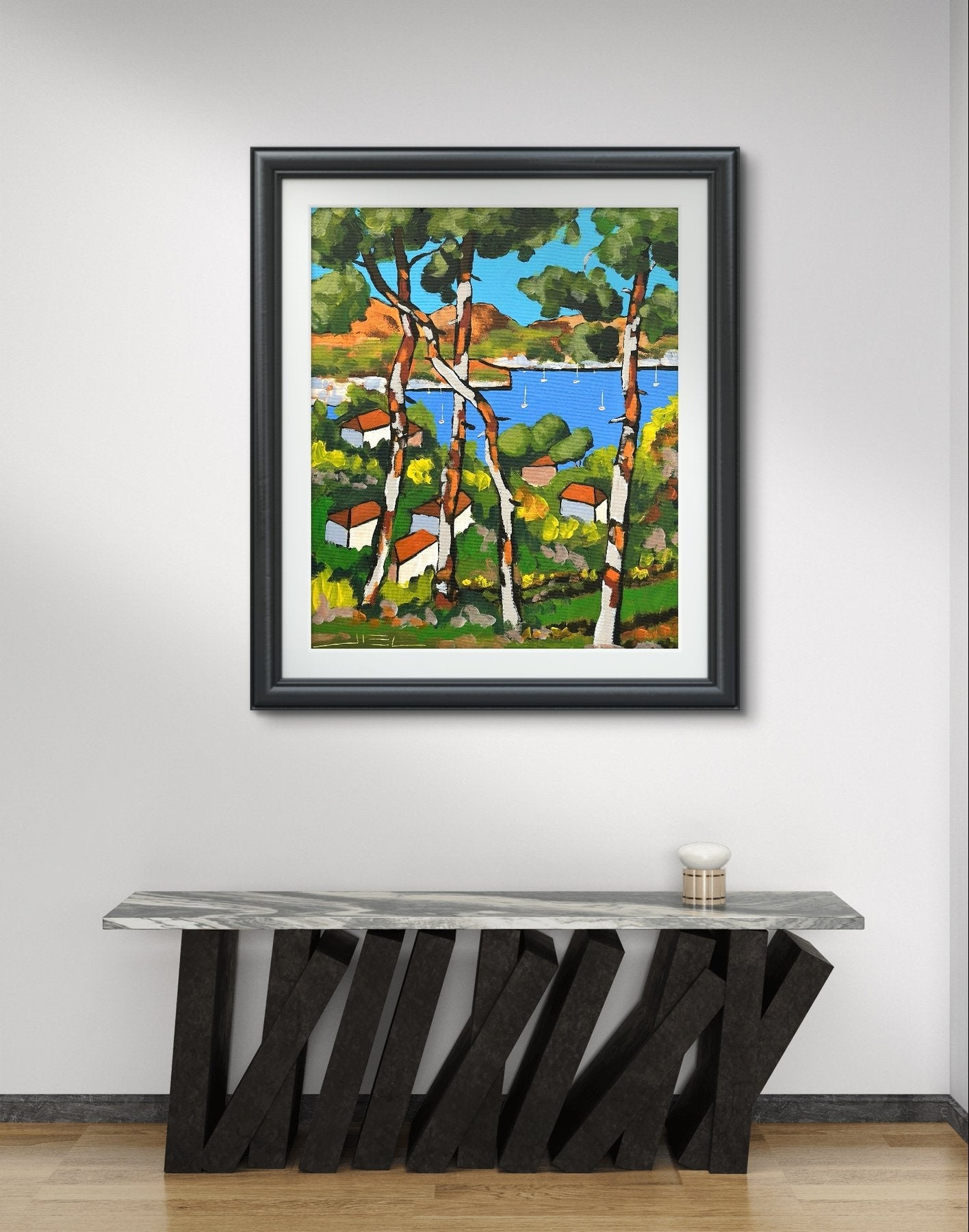 Acrylique sur toile au couteau montée sur châssis en bois.