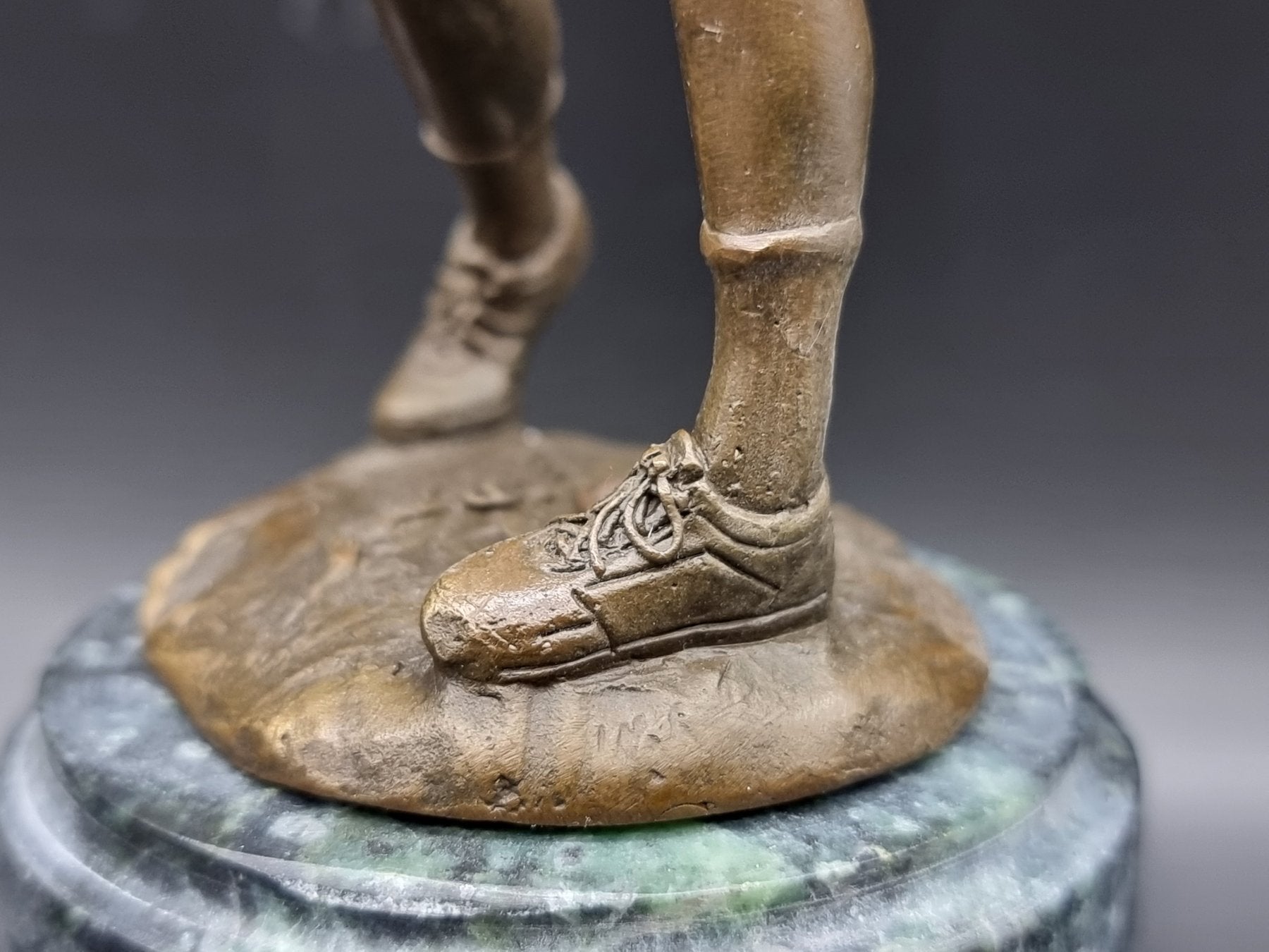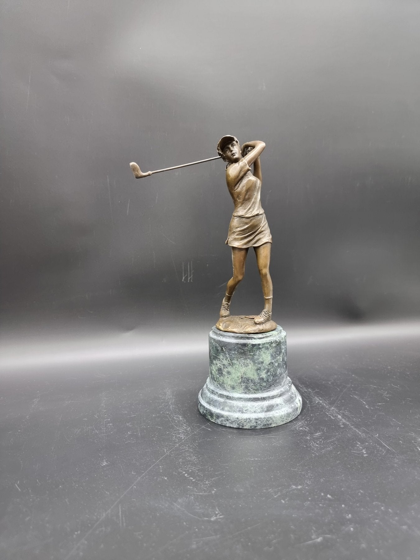 Joueuse de golf en bronze de haute qualité sur socle en marbre vert.