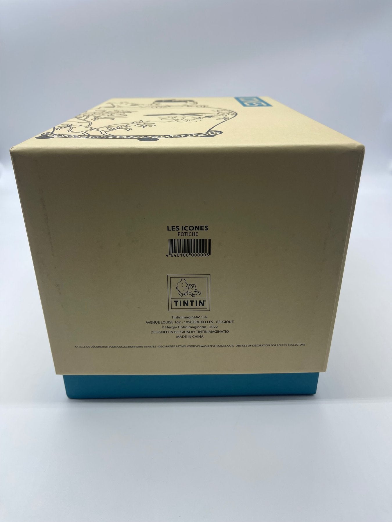 Figurine collector en résine issue du vase chinois sur la couverture du Lotus Bleu avec Tintin et Milou à l'intérieur. Cette reproduction de 20 cm fait partie des Icônes, la nouvelle collection regroupant les objets les plus représentatifs des Aventures de Tintin.